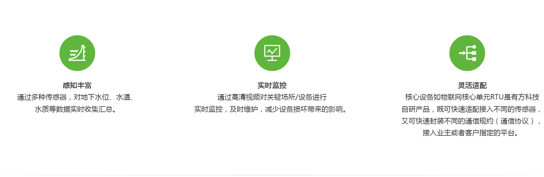 本系统采用物联网架构,将地下水位、水温、水质参数实时采集,并按照监管中心要求时间点进行数据上报,在平台实现整个监测环境点的地下水环境监测。同时考虑到部分地区的监测井可能被异常打开或人为损坏,对井盖进行智能化监测,并根据现场触发条件,启动视频监控,上传视频片段或者抓拍图片,并能通过平台予以预警,提醒监管人员及时处理。