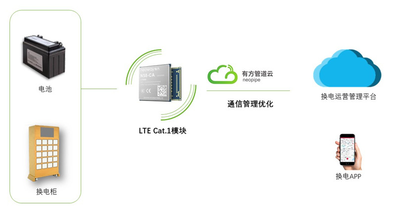 有方科技Cat.1明星产品N58在共享行业已经得到成熟而广泛的应用,尤其在共享充电宝、共享电动车等行业的成熟商用方案,可以很好地为电动两轮车换电行业服务。