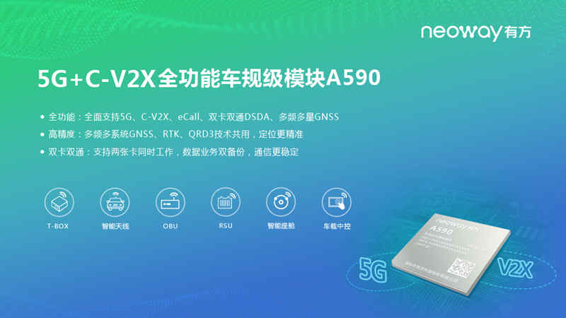除N510M,有方科技双芯布局,满足5G物联网多场景需求。公司于今年Q2推出车规级5G+C-V2X通信模组A590,为智能汽车安全驾驶、自动驾驶、车路协同提供稳定可靠的通信保障。
