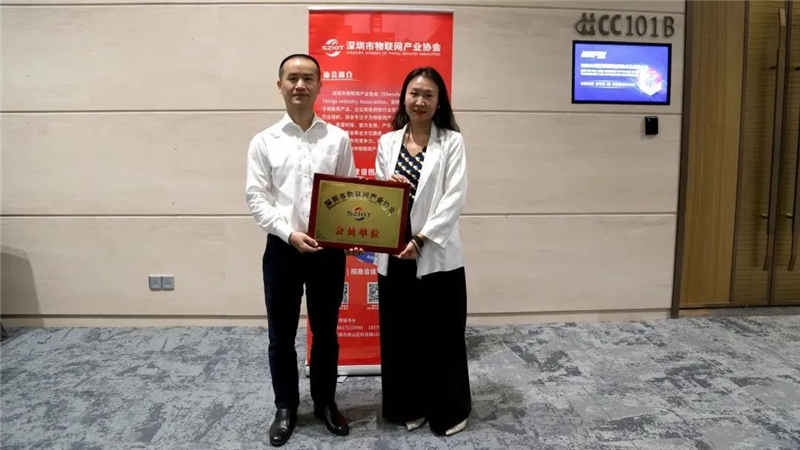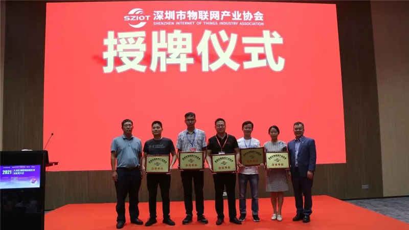 随后大会举行了深圳市物联网产业协会新入会员的授牌仪式。参加授牌仪式的会员企业有:深圳市共进电子股份有限公司、深圳市酷鱼互动科技有限公司、深圳妙月科技有限公司、成都四相致新科技有限公司、深圳市创荣发电子有限公司、山东云则信息技术有限公司、深圳市久通物联股份有限公司、深圳华晟物联网技术有限公司、深圳市拓普泰尔科技有限公司、西安富立叶微电子有限责任公司、深圳市三物互联技术有限公司、君安天下(深圳)技术服务有限公司、威凯(深圳)检测技术有限公司、四川锦睿智诚科技有限公司、东莞信宝电子产品检测有限公司、深圳华信宝电子产品检测技术有限公司、深圳云顶智慧科技有限公司、深圳市昊洋智能有限公司、恵州巨能科技有限公司、深圳市微能信息科技有限公司。