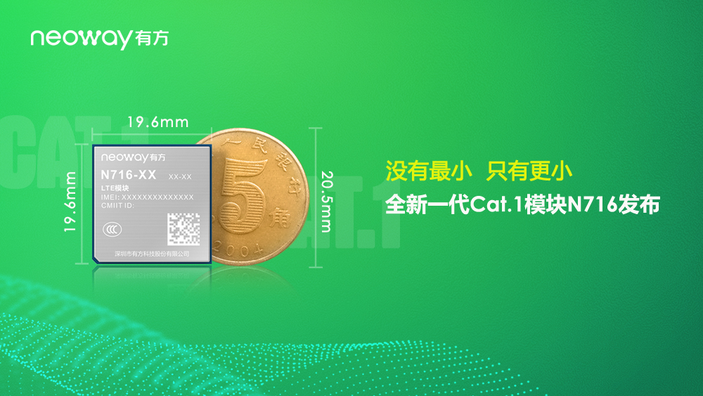 为满足对物联网通信模块体积有更高要求的共享两轮车等应用场景需求,最近有方科技又推出了当前业内体积最小的Cat.1产品N716。据罗伟介绍,N716只有19.6*19.6mm大小,比5角硬币还小,具有极高的集成度。采用了OpenCPU开发模式,客户在此基础上开发自己的产品更加简单快捷,能够有效降低开发成本。此外,N716还支持蓝牙近场通信、Wi-Fi定位、内嵌高精度定位算法,能够满足多种多样的应用需求,包括穿戴式设备、学生卡、宠物跟踪等场景。罗伟表示,体积超小的N716还可以很方便地应用于共享电动车、共享单车、共享滑板车等终端上,为共享经济2.0的蓬勃发展奠定基础。同时,有高质量语音功能需求的公网对讲、车载终端,以及电签POS机、扫码POS、云喇叭、支付盒子等金融支付终端,需要稳定可靠联接的工业监控终端等等,都是Cat.1大显身手的舞台。